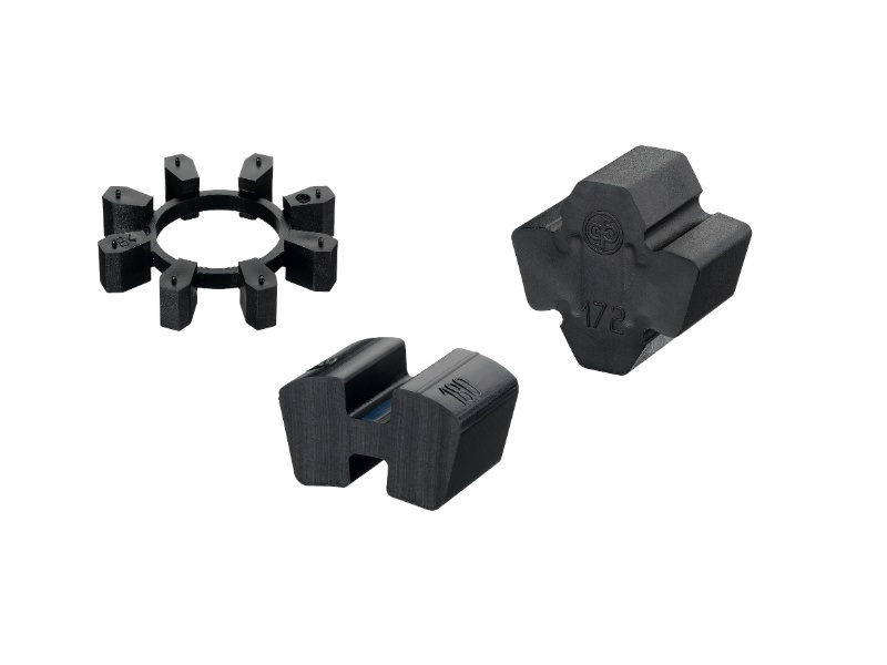 Наше предприятие изготавливает упругие элементы для кулачковых муфт всех типов. Эластичные элементы, сегменты и кулачки для упругих муфт производим из полиуретана. Полиуретан обладает наилучшими демпфирующими и гасящими виброудар свойствами, что делает этот материал незаменимым при производстве упругих элементов. Широкий диапазон твердости полиуретана, позволяет производить вставки для муфт с твердостью от 40 до 90ШорА, в зависимости от того требуется более плавно гасить нагрузку или нужно обеспечить высокую износостойкость и повышенный ресурс работы упругого элемента.