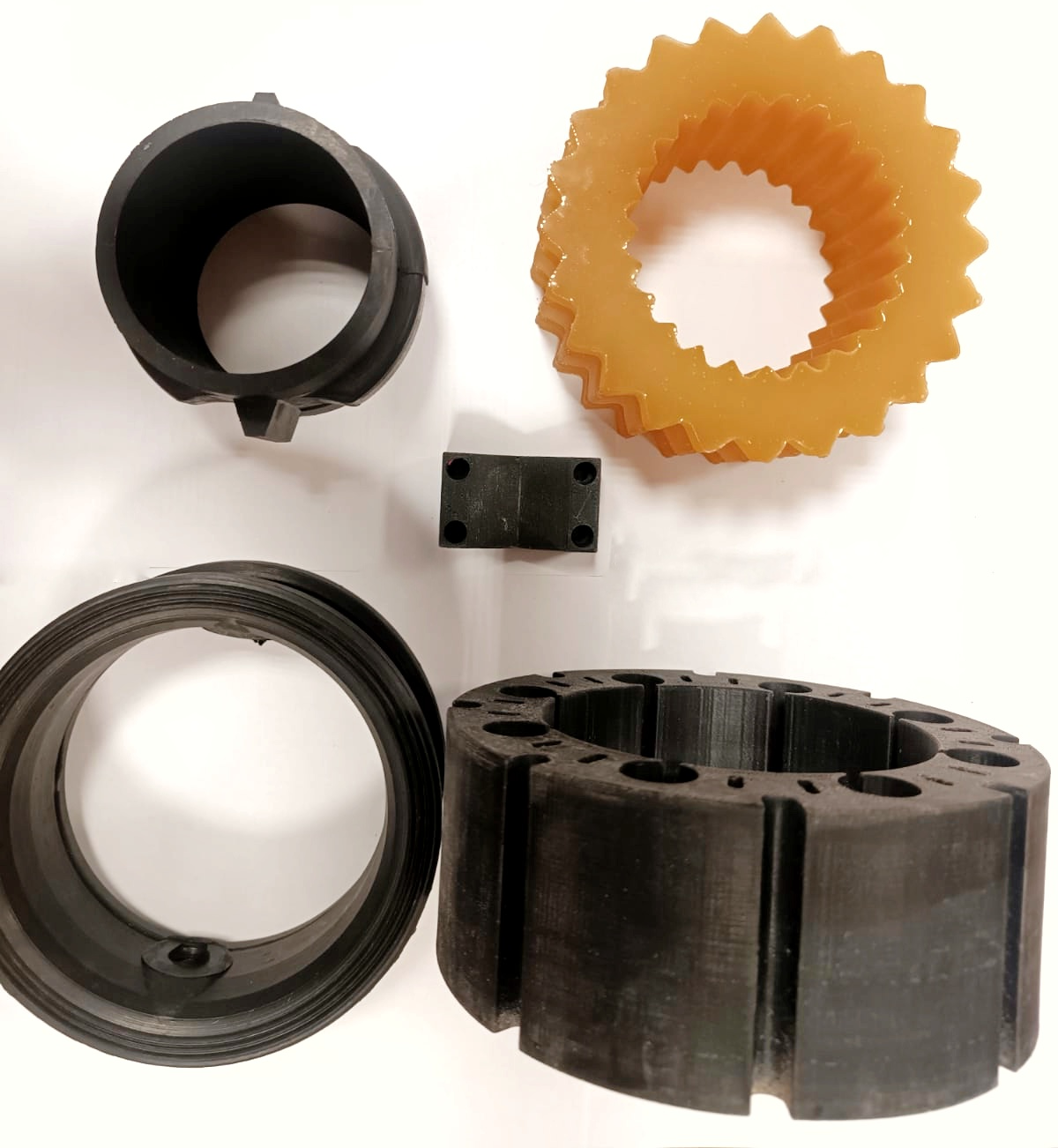 Наше предприятие изготавливает упругие элементы для кулачковых муфт всех типов. Эластичные элементы, сегменты и кулачки для упругих муфт производим из полиуретана. Полиуретан обладает наилучшими демпфирующими и гасящими виброудар свойствами, что делает этот материал незаменимым при производстве упругих элементов. Широкий диапазон твердости полиуретана, позволяет производить вставки для муфт с твердостью от 40 до 90ШорА, в зависимости от того требуется более плавно гасить нагрузку или нужно обеспечить высокую износостойкость и повышенный ресурс работы упругого элемента.